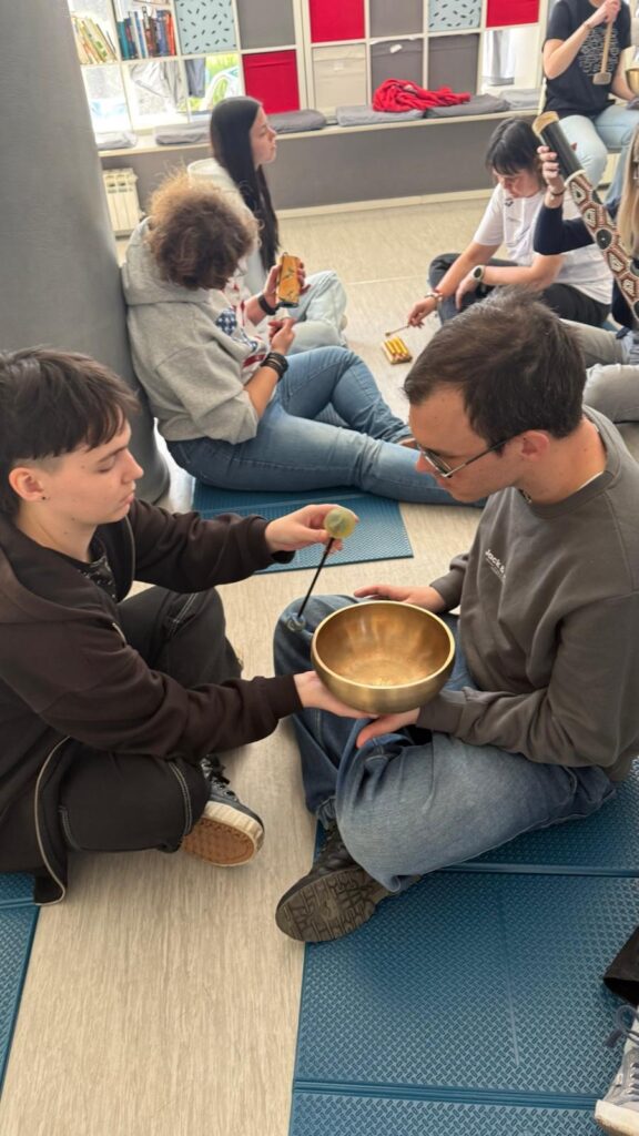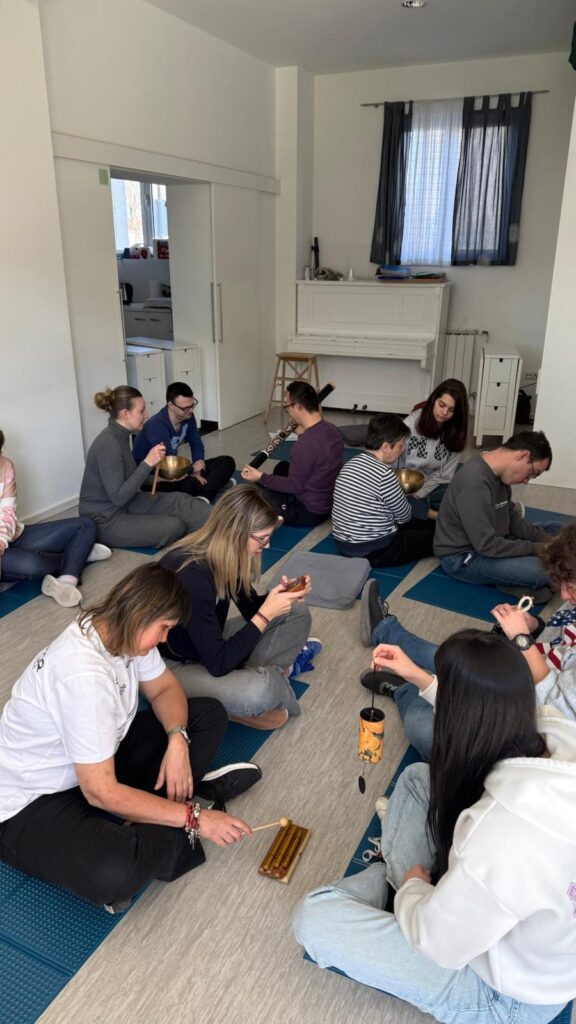Na radionici primjene zvuka u terapijske svrhe, u sklopu projekta “Mentalno zdravlje je bitno”, učili smo kako se u kratkom vremenu opustiti jednostavnim tehnikama disanja uz umirujuće zvukove terapeutskih instrumenata. A nakon opuštanja, naši korisnici demonstrirali su studentima ERF-a korištenje terapeutskih instrumenata. Učenje tehnika samopomoći u svakodnevnim stresnim situacijama od neprocjenjivog nam je značaja te nastavljamo brinuti o mentalnom zdravlju. Aktivnosti su dio projekta financiranog iz programa i projekata udruga iz područja socijalnog i humanitarnog značenja iz Proračuna Grada Zagreba za 2025. godinu.
