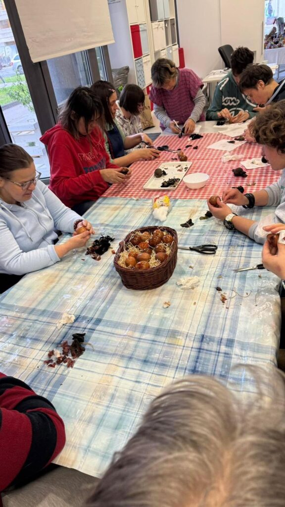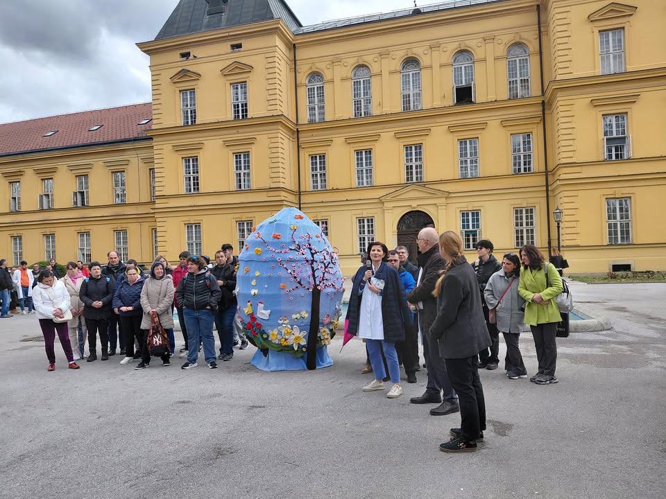 Ponosni smo na još jednu prekrasnu pisanicu koja je nastala u suradnji s Klinikom za psihijatriju Vrapče. Zadnji dan ožujka u dvorištu Klinike za psihijatriju Vrapče u Zagrebu održano je svečano postavljanje Velike pletene pisanice na kojem su sudjelovale i pojedine članice Štrikeraj čitaonice „Tu i tamo“ Belišće. Ovogodišnja pisanica donosi novo, razigrano izdanje – obogaćena je veselim uskrsnim motivima i bojama koje simboliziraju radost, obnovu i zajedništvo, a u cijelosti je izrađena od pletenih i recikliranih materijala, među kojima su i brojni pleteni ukrasi naših vrijednih pletilja. Ovo im je ujedno bila prilika da osobno uruče novu donaciju raznovrsnih pletenih rukotvorina koje pomažu oboljelim i potrebitim osobama. Hvala svima koji su svojim trudom i voljom sudjelovali kako u nastanku ove pisanice tako i svih ostalih rukotvorina u proteklim godinama. I ova aktivnost i inicijativa nastala je u sklopu trogodišnjeg programa RUKE koji je podržan od strane Ministarstva rada, mirovinskoga sustava, obitelji i socijalne politike.