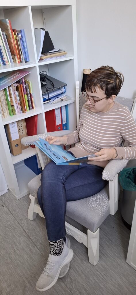 „Najotmjeniji div u gradu” je knjiga s kojom smo se družili u ožujku. Uživali smo putujući tim čudesnim svijetom i rasli zajedno s likovima. Sretni smo što naša novoosnovana knjižnica svakodnevno ispunjava svoj cilj. Imamo mogućnost pružiti našim korisnicima mirni kutak kada god im to zatreba, učimo se ponašanju u knjižnici i posuđivanju knjiga, listamo stranice i uživamo u riječima. Aktivnosti su dio projekta „Šlamprla čita knjigu i radi glinu“, financiran iz proračuna grada Zagreba.